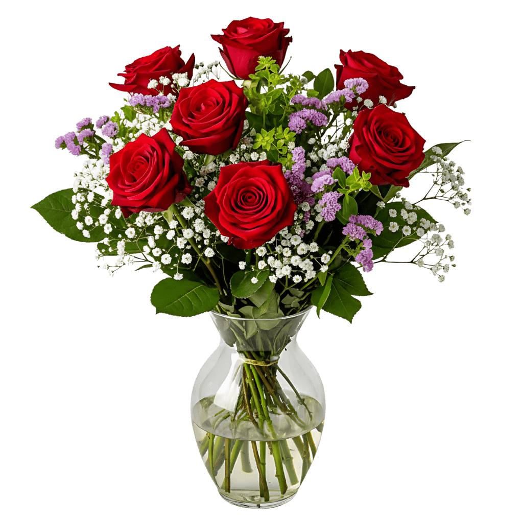 Rot ist die Farbe der Liebe, der Leidenschaft und der Verbundenheit – aber auch der Entschlossenheit. Dieser Strauß ist nichts für halbe Gesten: Er sagt mit jeder Blüte “Ich meine es ernst“, “Du bist mein Ein und Alles“ oder “Ich kann nicht aufhören, an dich zu denken“. Das satte Rot der Rosen wird durch feine weiße Akzente kontrastiert, was dem Strauß Tiefe, Eleganz und einen Hauch von Poesie verleiht. "Herzensfeuer" ist somit das ideale Geschenk, wenn man sein Innerstes nach außen tragen möchte – sei es am Valentinstag, zum Jahrestag oder ganz ohne Anlass, einfach aus Liebe.Verschicke “Herzensfeuer” jetzt deutschlandweit